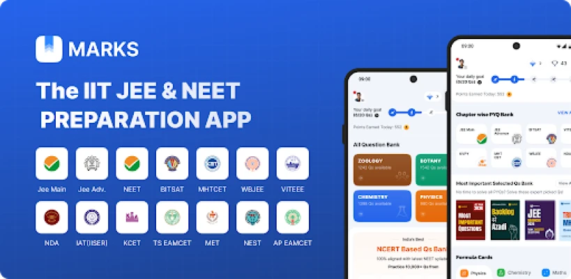 MARKS is a free app in which you can download and practice chapter-wise previous year questions of IIT JEE Main, IIT JEE Advanced, NEET, BITSAT, WBJEE, MHT CET, NDA, KVPY and much more.
