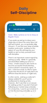 A few questions might arise in your mind that is self discipline good or bad? What's the benefits of self discipline? What's the success story of self discipline and you might think that i have no self discipline or i don't have self discipline or i struggle with self discipline then this all query's answer prepared this app.