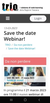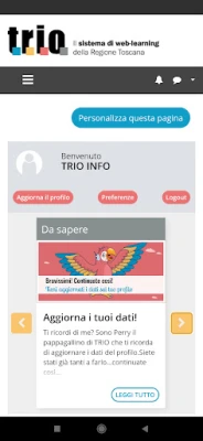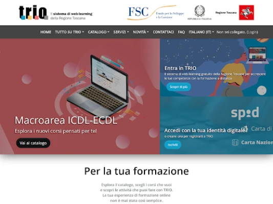 TRIO è il sistema di web learning della Regione Toscana che mette a disposizione di tutti, in forma totalmente gratuita, prodotti e servizi formativi su argomenti trasversali o specialistici.